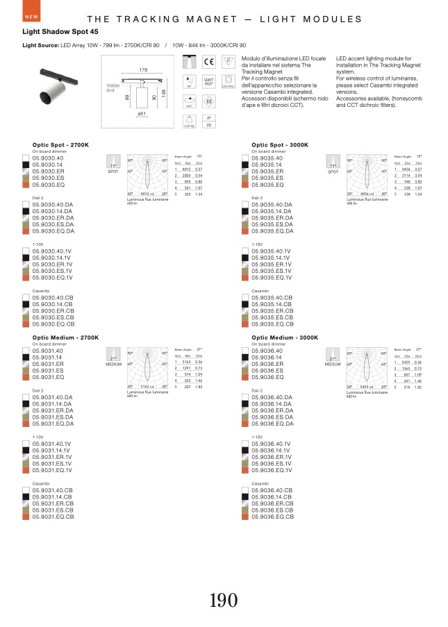 Light Source: LED Array 10W - 799 lm - 2700K/CRI 90