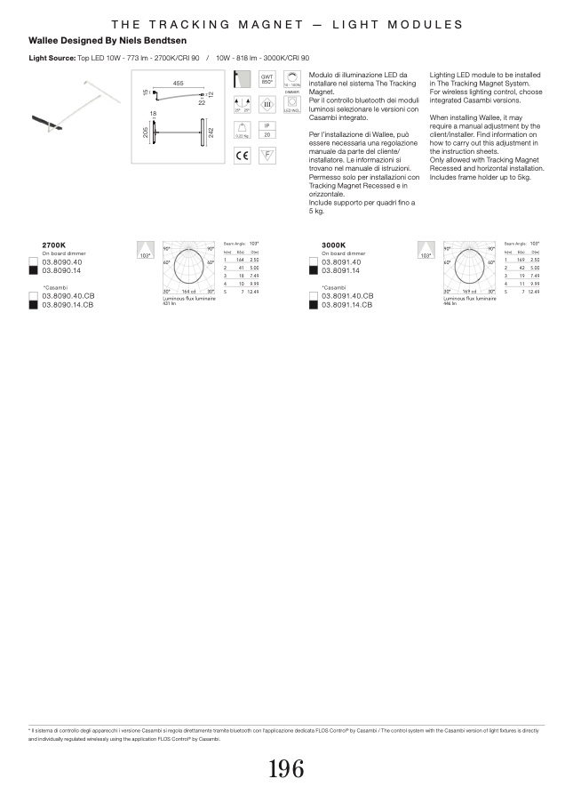 * Il sistema di controllo degli apparecchi i versione Casambi si regola direttamente tramite bluetooth con l'applicazione dedicata FLOS Control