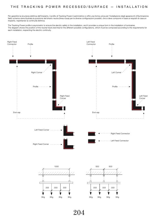Per garantire la sicurezza elettrica dell’impianto, il profilo di Tracking Power è asimmetrico e offre una forma unica per l’installazione degli apparecchi d’illuminazione.