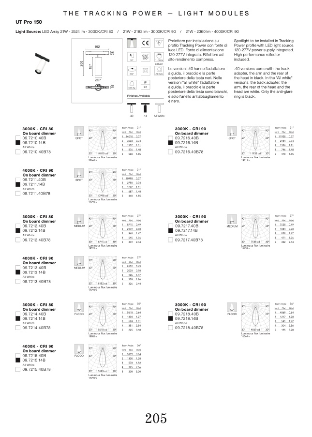 21W - 2183 lm - 3000K/CRI 90 / 21W - 2360 lm - 4000K/CRI 90
