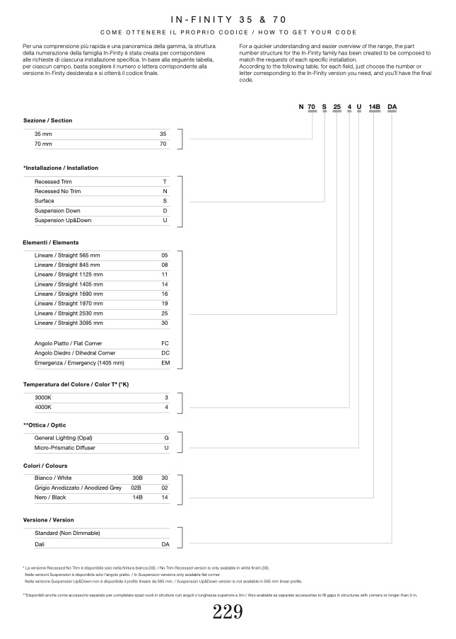 * La versione Recessed No Trim è disponibile solo nella finitura bianca (30). / No Trim Recessed version is only available in white finish (30).