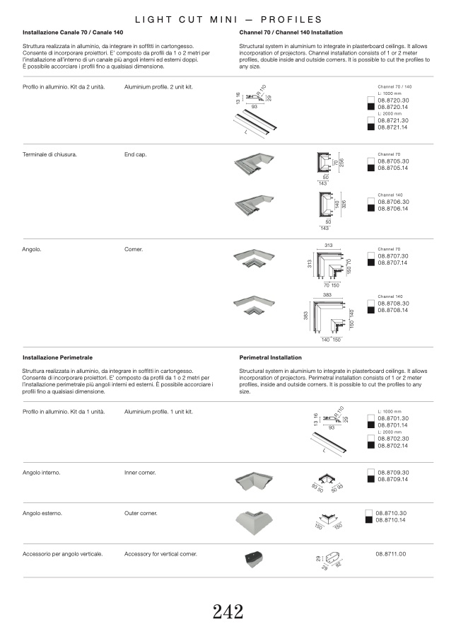profiles, double inside and outside corners. It is possible to cut the profiles to