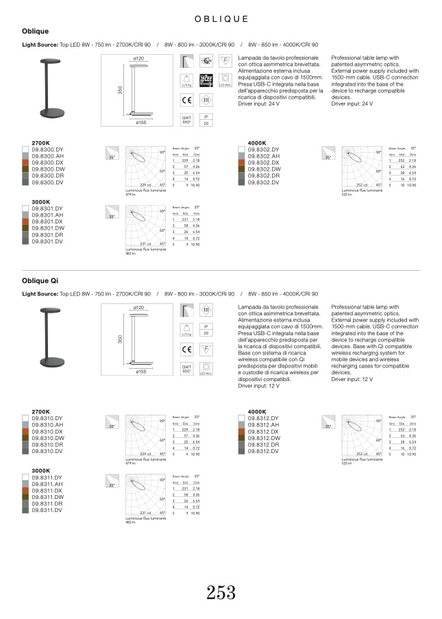 Light Source: Top LED 8W - 750 lm - 2700K/CRI 90