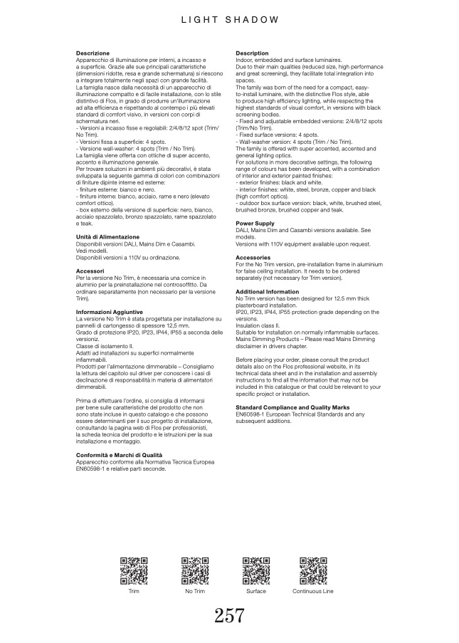 - Versione wall-washer: 4 spots (Trim / No Trim).
