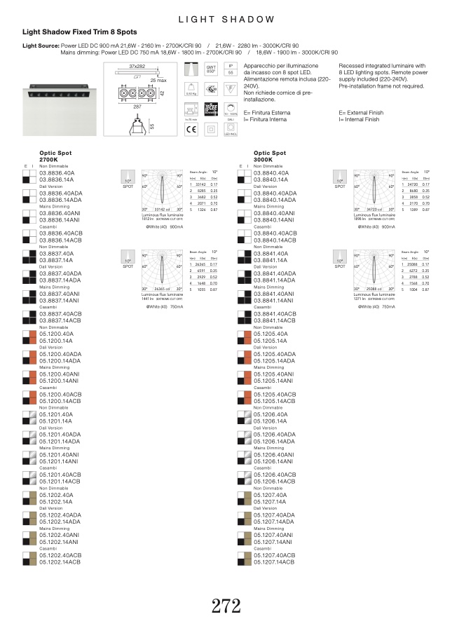 Light Source: Power LED DC 900 mA 21,6W - 2160 lm - 2700K/CRI 90 / 21,6W - 2280 lm - 3000K/CRI 90