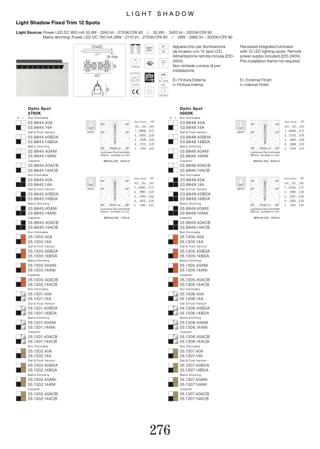 Light Source: Power LED DC 900 mA 32,4W - 3240 lm - 2700K/CRI 90 / 32,4W - 3420 lm - 3000K/CRI 90