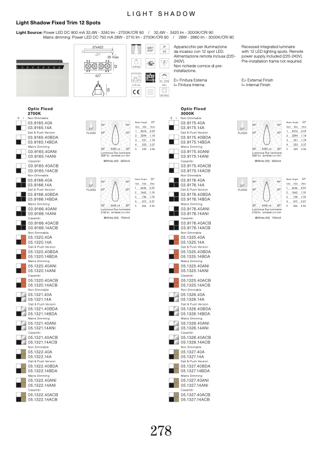 Light Source: Power LED DC 900 mA 32,4W - 3240 lm - 2700K/CRI 90 / 32,4W - 3420 lm - 3000K/CRI 90