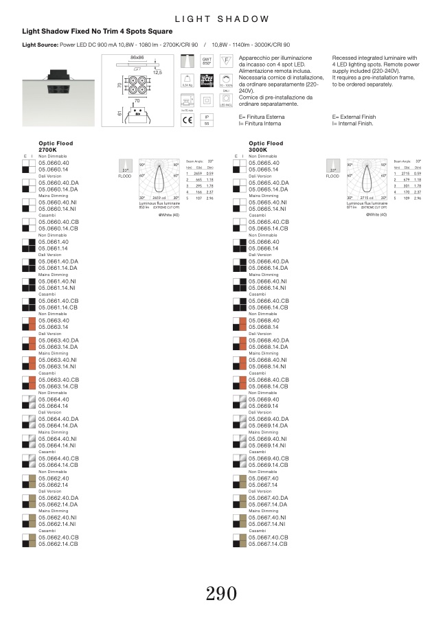 Light Source: Power LED DC 900 mA 10,8W - 1080 lm - 2700K/CRI 90