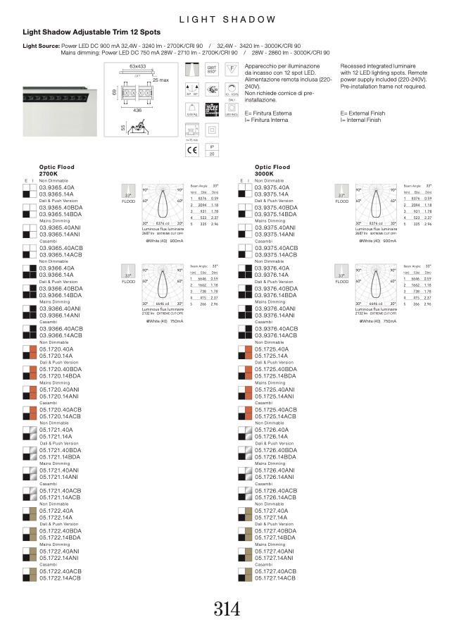 Light Source: Power LED DC 900 mA 32,4W - 3240 lm - 2700K/CRI 90 / 32,4W - 3420 lm - 3000K/CRI 90