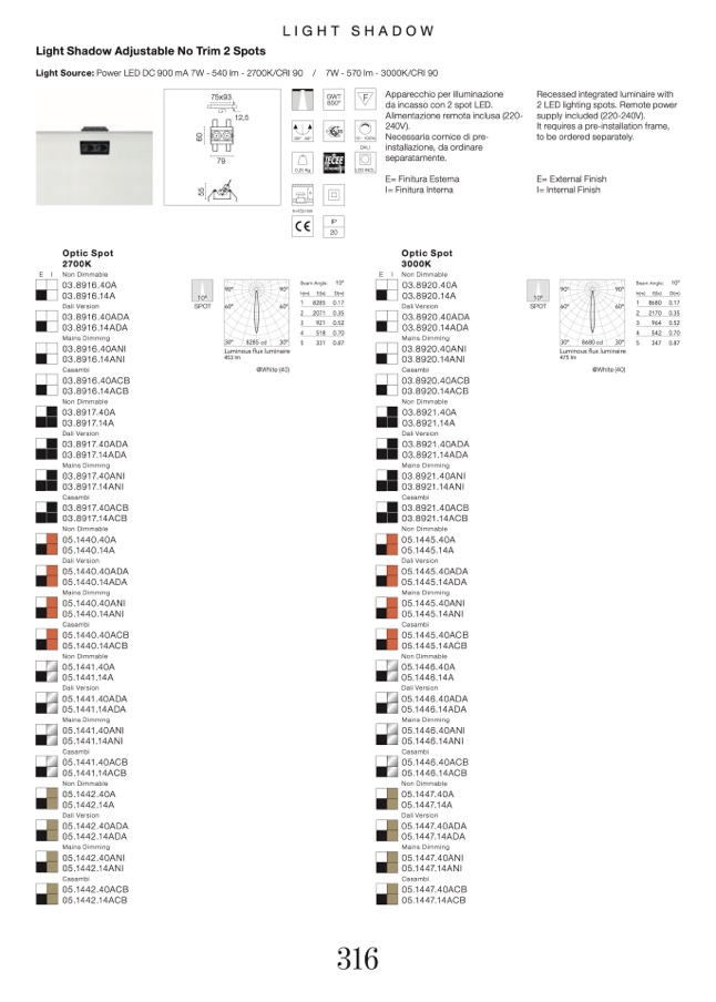 Light Source: Power LED DC 900 mA 7W - 540 lm - 2700K/CRI 90
