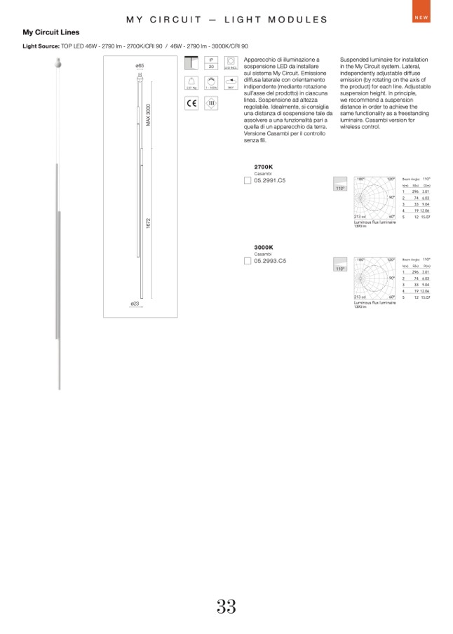 Light Source: TOP LED 46W - 2790 lm - 2700K/CRI 90 / 46W - 2790 lm - 3000K/CRI 90