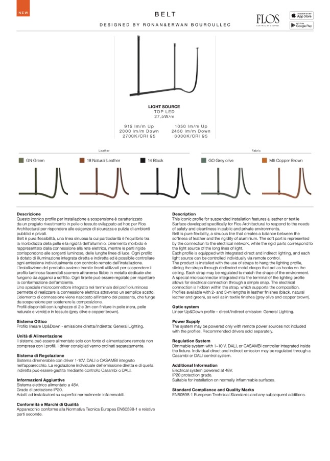 da un pregiato rivestimento in pelle o tessuto sviluppato ad hoc per Flos