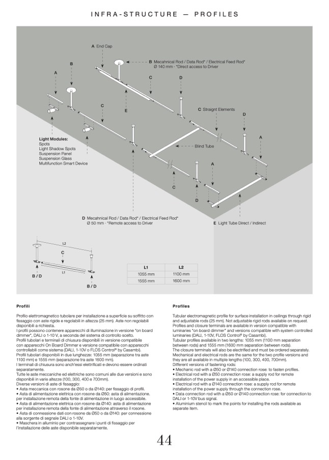 • Mechanic rod with a Ø50 or Ø140 connection rose: to fasten profiles.