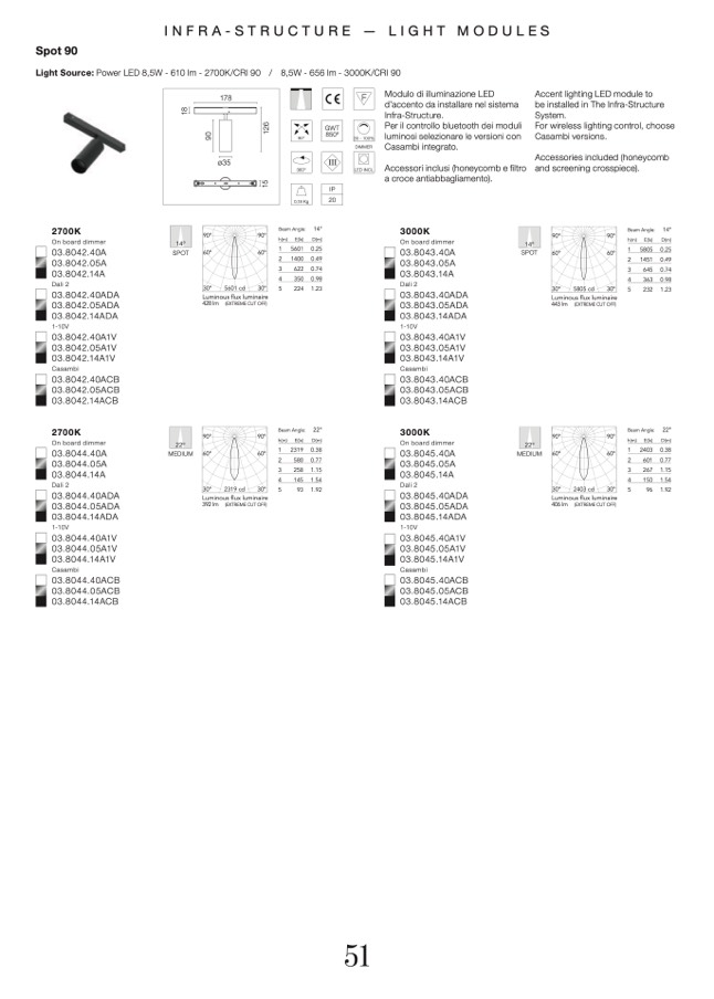Light Source: Power LED 8,5W - 610 lm - 2700K/CRI 90