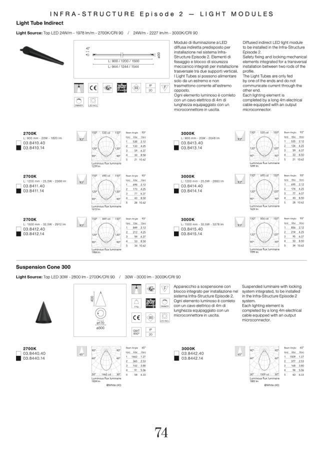 Light Source: Top LED 24W/m - 1978 lm/m - 2700K/CRI 90