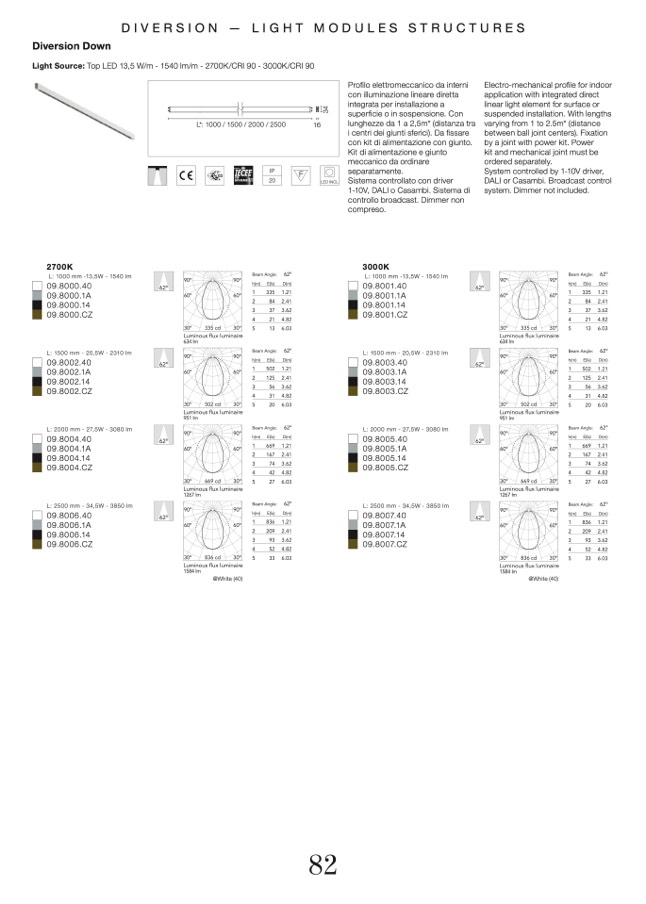 Light Source: Top LED 13,5 W/m - 1540 lm/m - 2700K/CRI 90 - 3000K/CRI 90