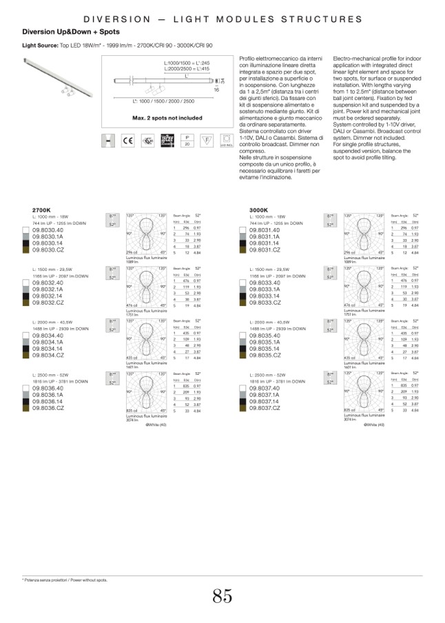 Light Source: Top LED 18W/m* - 1999 lm/m - 2700K/CRI 90 - 3000K/CRI 90