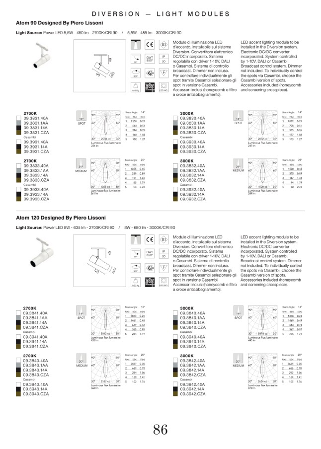 Light Source: Power LED 5,5W - 450 lm - 2700K/CRI 90