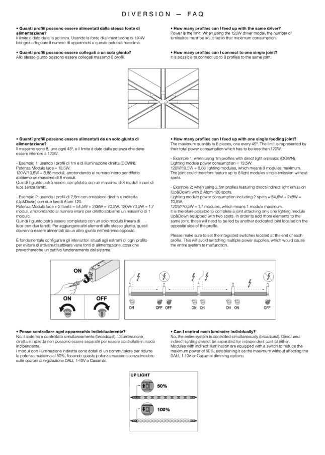I moduli con illuminazione indiretta sono dotati di un commutatore per ridurre