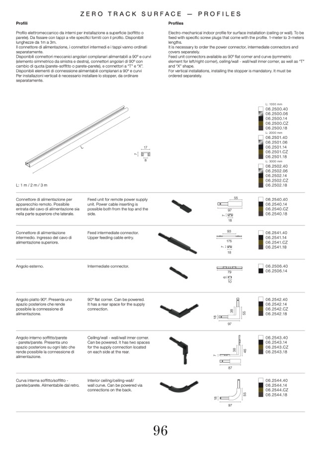 Electro-mechanical indoor profile for surface installation (ceiling or wall). To be