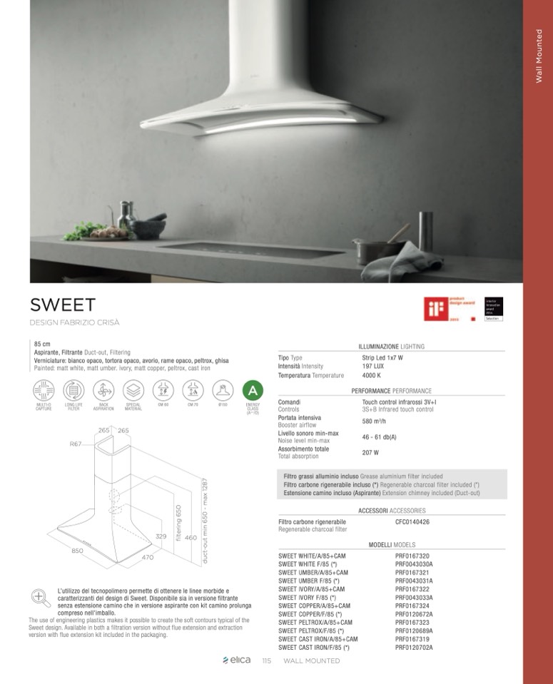 Sweet design. Available in both a filtration version without flue extension and extraction