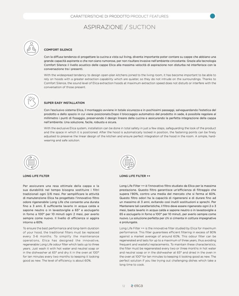 Comfort Silence, the sound level of Elica extraction hoods at maximum extraction speed does not disturb or interfere with the