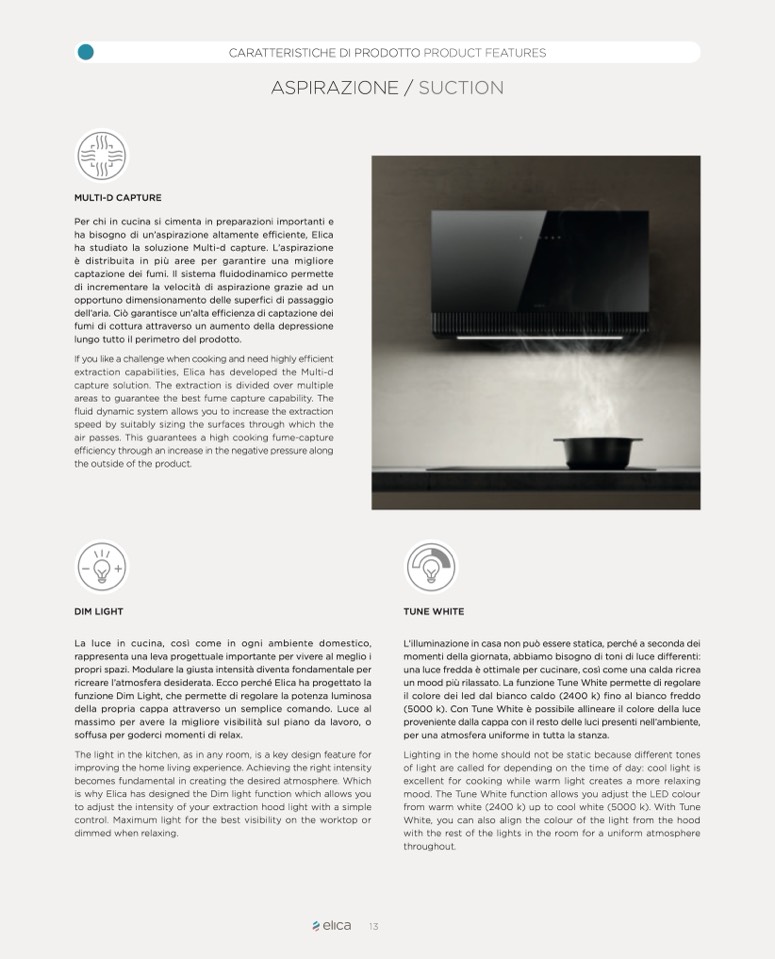 extraction capabilities, Elica has developed the Multi-d