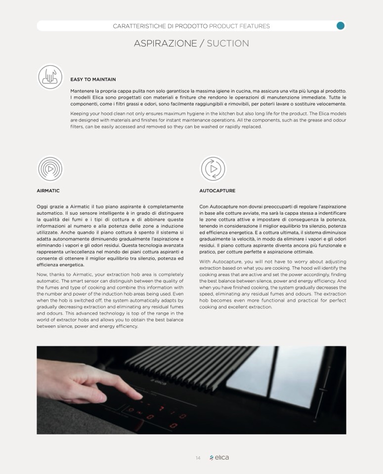 I modelli Elica sono progettati con materiali e finiture che rendono le operazioni di manutenzione immediate. Tutte le