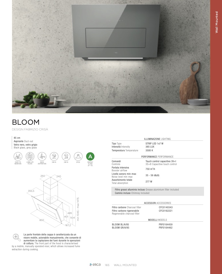 di cottura. The front part of the hood is characterised