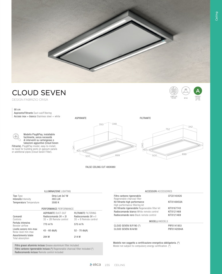 Filtro carbone rigenerabile incluso (*) Regenerable charcoal filter included (*)