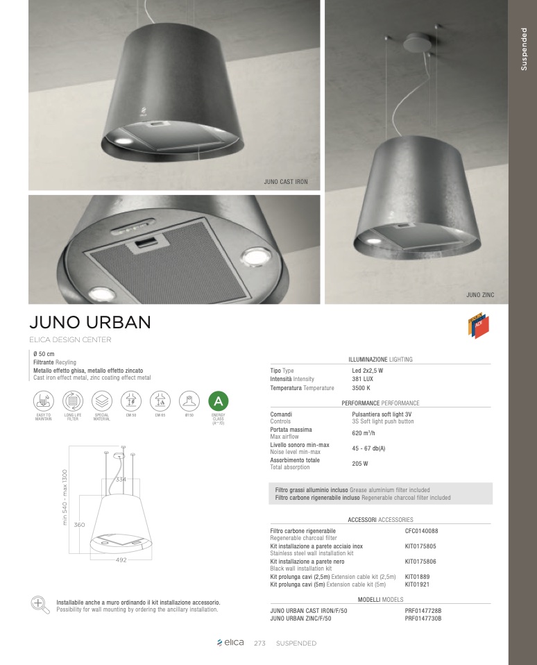 Installabile anche a muro ordinando il kit installazione accessorio.