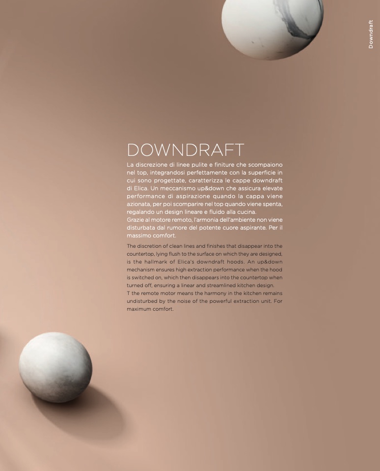 is the hallmark of Elica’s downdraft hoods. An up&down