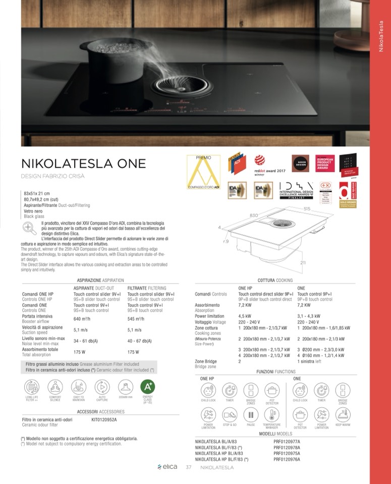 downdraft technology, to capture vapours and odours, with Elica’s signature state-of-the-