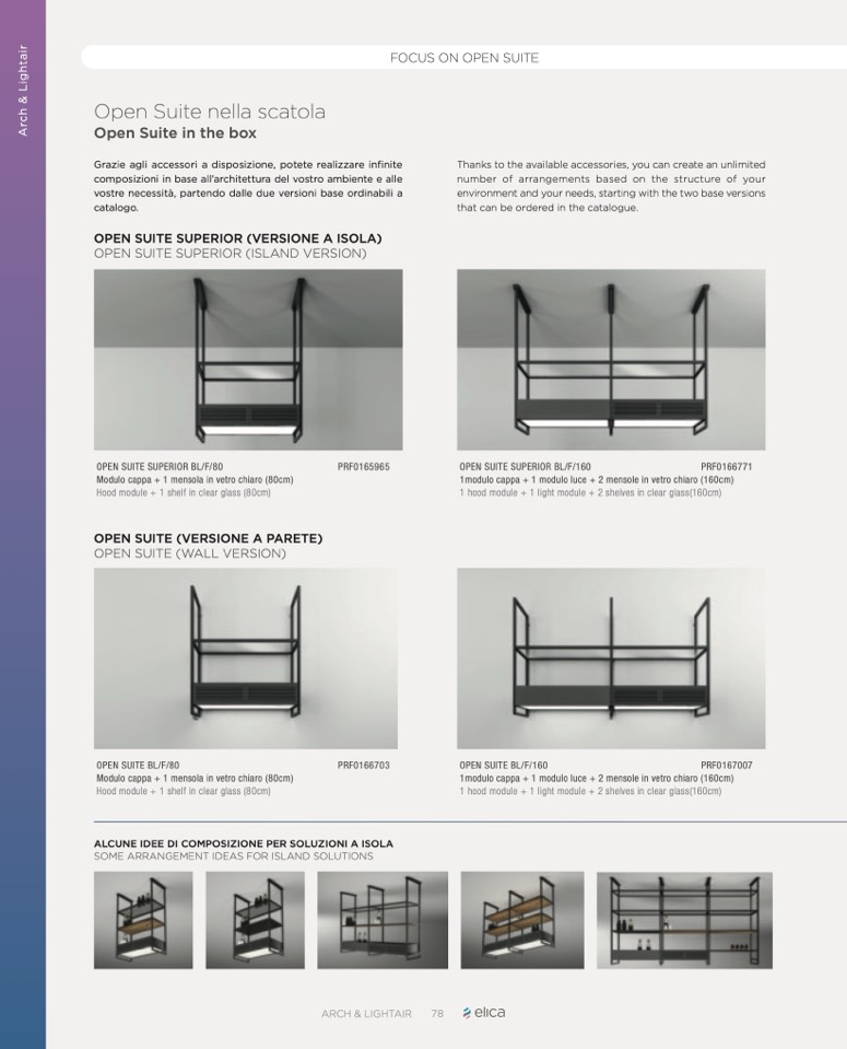 1modulo cappa + 1 modulo luce + 2 mensole in vetro chiaro (160cm)