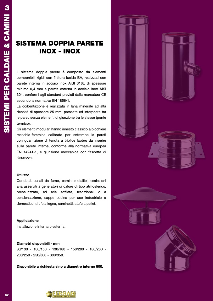 minimo 0,4 mm e parete esterna in acciaio inox AISI