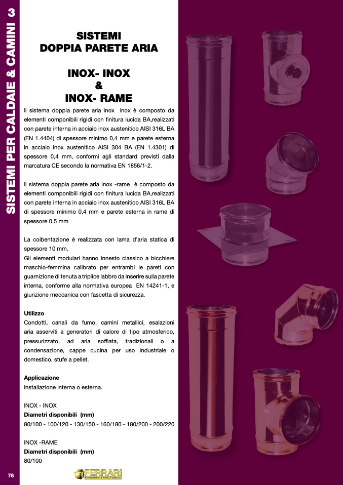 Il sistema doppia parete aria inox -rame è composto da