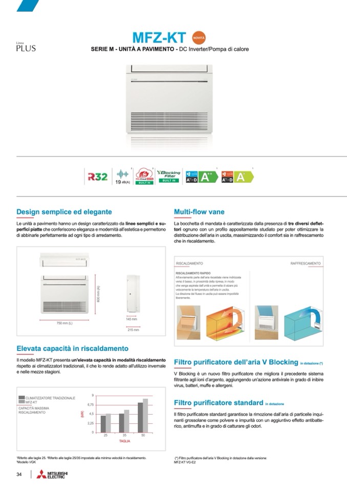 Il modello MFZ-KT presenta un'elevata capacità in modalità riscaldament