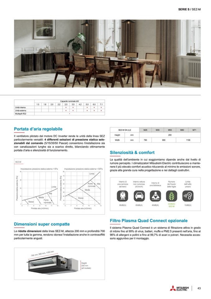 Il ventilatore pilotato dal motore DC Inverter rende le unità della linea SEZ