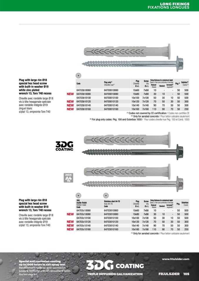 For plug only codes: Pkg. 100 and Outerbox 1000 / Pour codes cheville nue Pkg. 100 et Cond. 1000