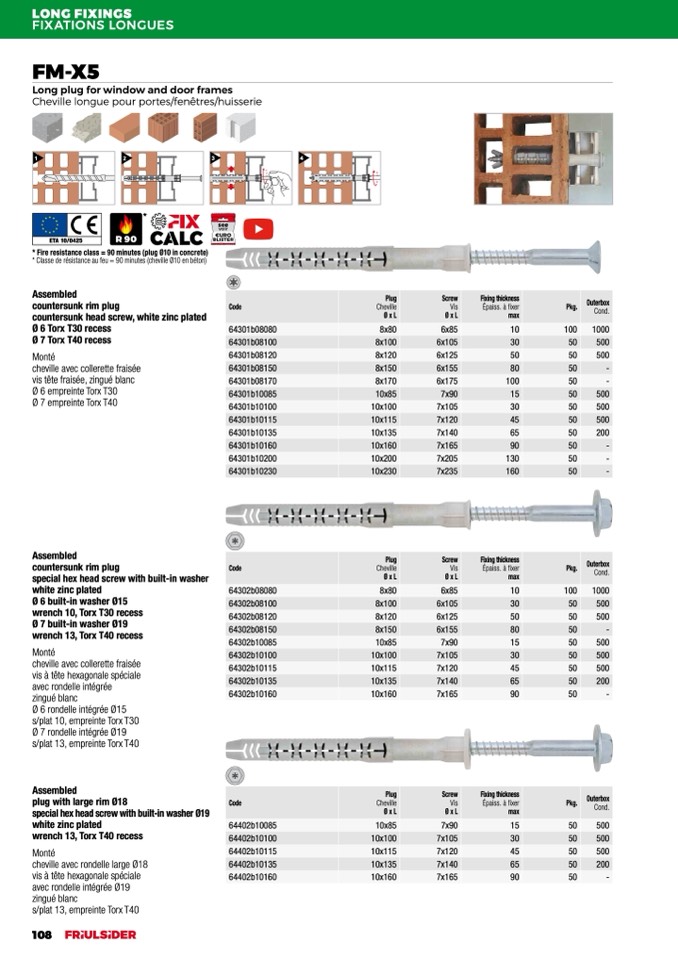 * Fire resistance class = 90 minutes (plug Ø10 in concrete)