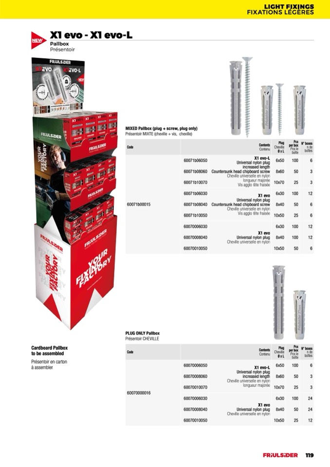 Présentoir MIXTE (cheville + vis, cheville)