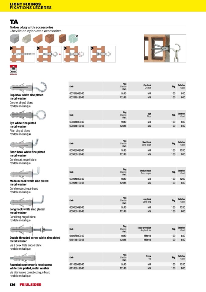 Double threaded screw white zinc plated