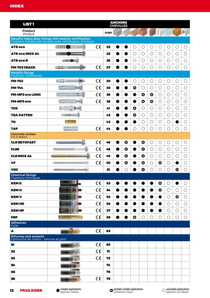Metallic heavy duty fixings with seismic certification