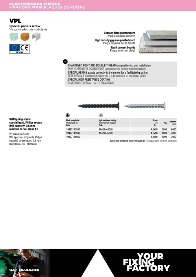 SHARPENED POINT AND DOUBLE THREAD fast positioning and installation