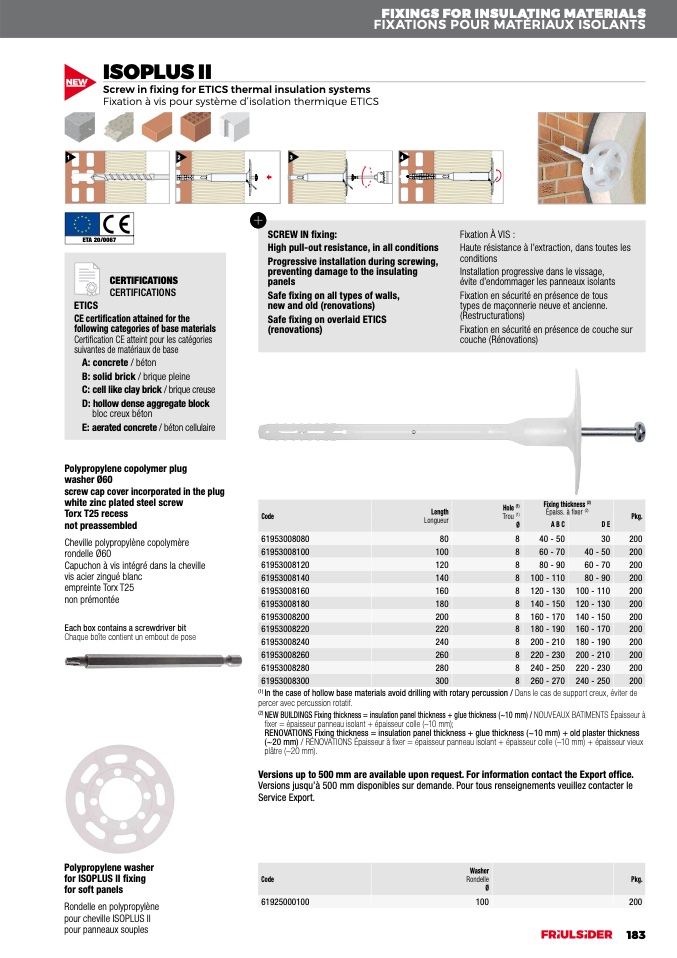 NEW BUILDINGS Fixing thickness = insulation panel thickness + glue thickness (~10 mm) / NOUVEAUX BATIMENTS Épaisseur à