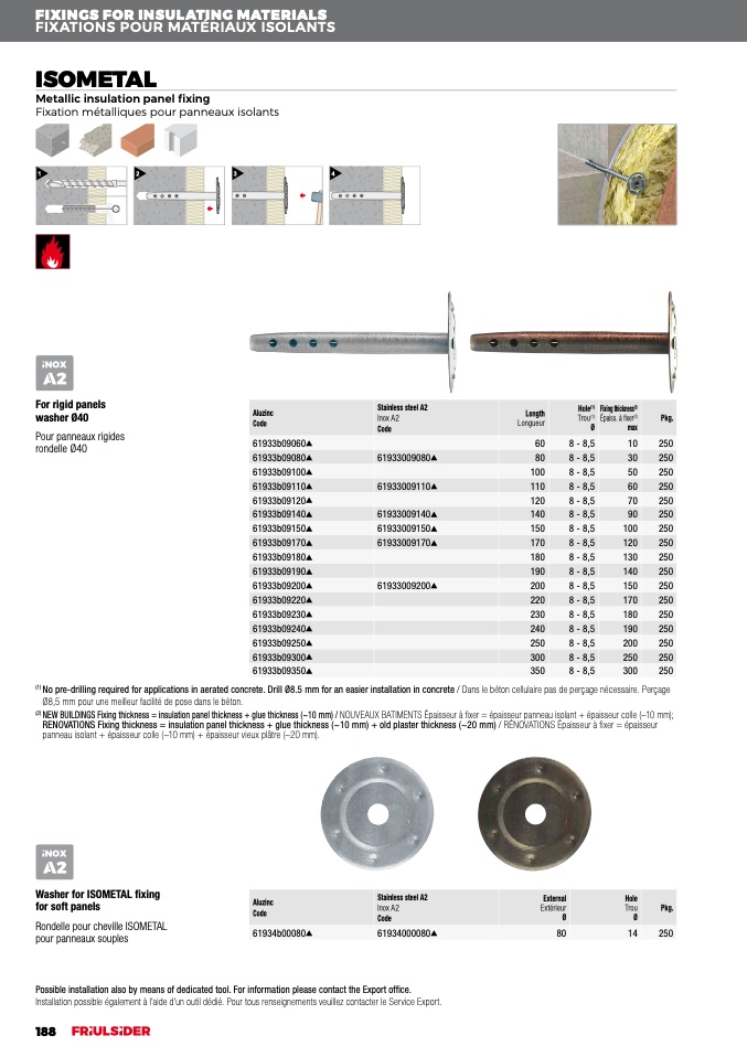 NEW BUILDINGS Fixing thickness = insulation panel thickness + glue thickness (~10 mm) / NOUVEAUX BATIMENTS Épaisseur à fixer = épaisseur panneau isolant + épaisseur colle (~10 mm);