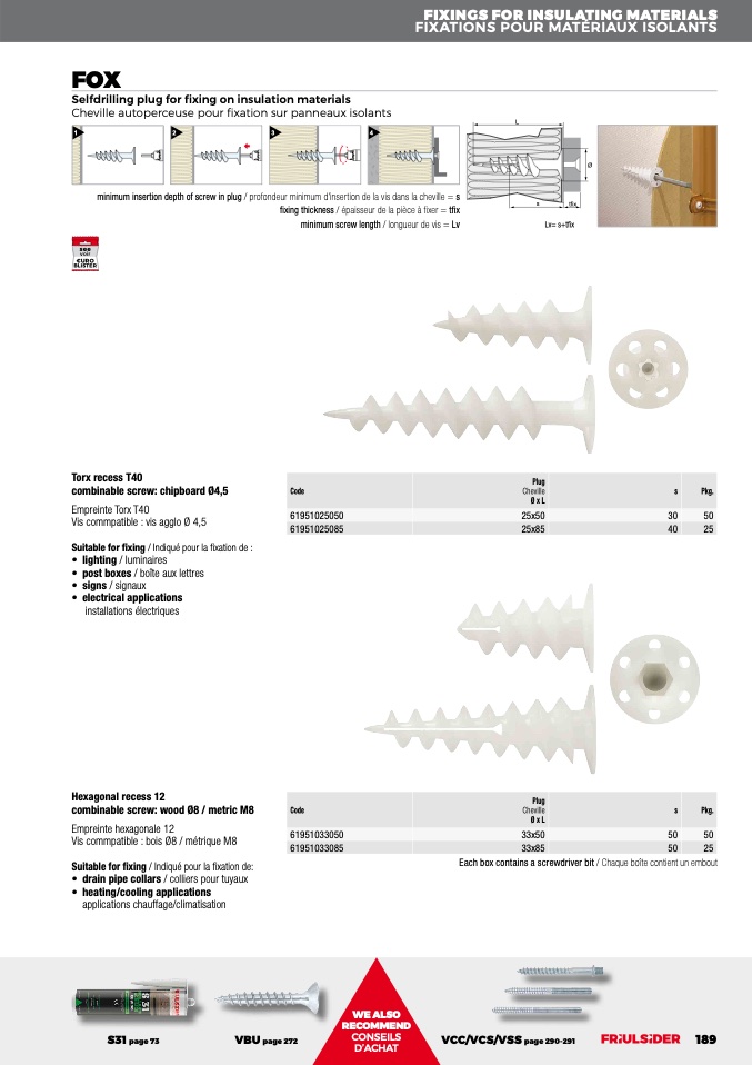 Suitable for fixing / Indiqué pour la fixation de :