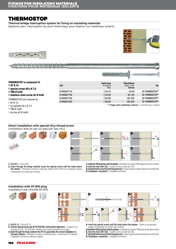 the plaster. / Introduire à travers le panneau isolant lourd. Visser la vis spéciale jusqu’à