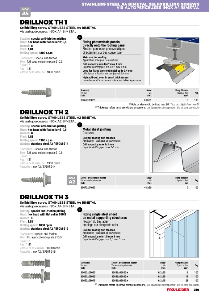 Utilisé pour la fixation sur bac jusqu’à 0,4 mm