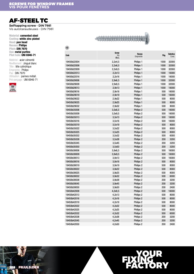 Pré-perçage : UNI 6946-71